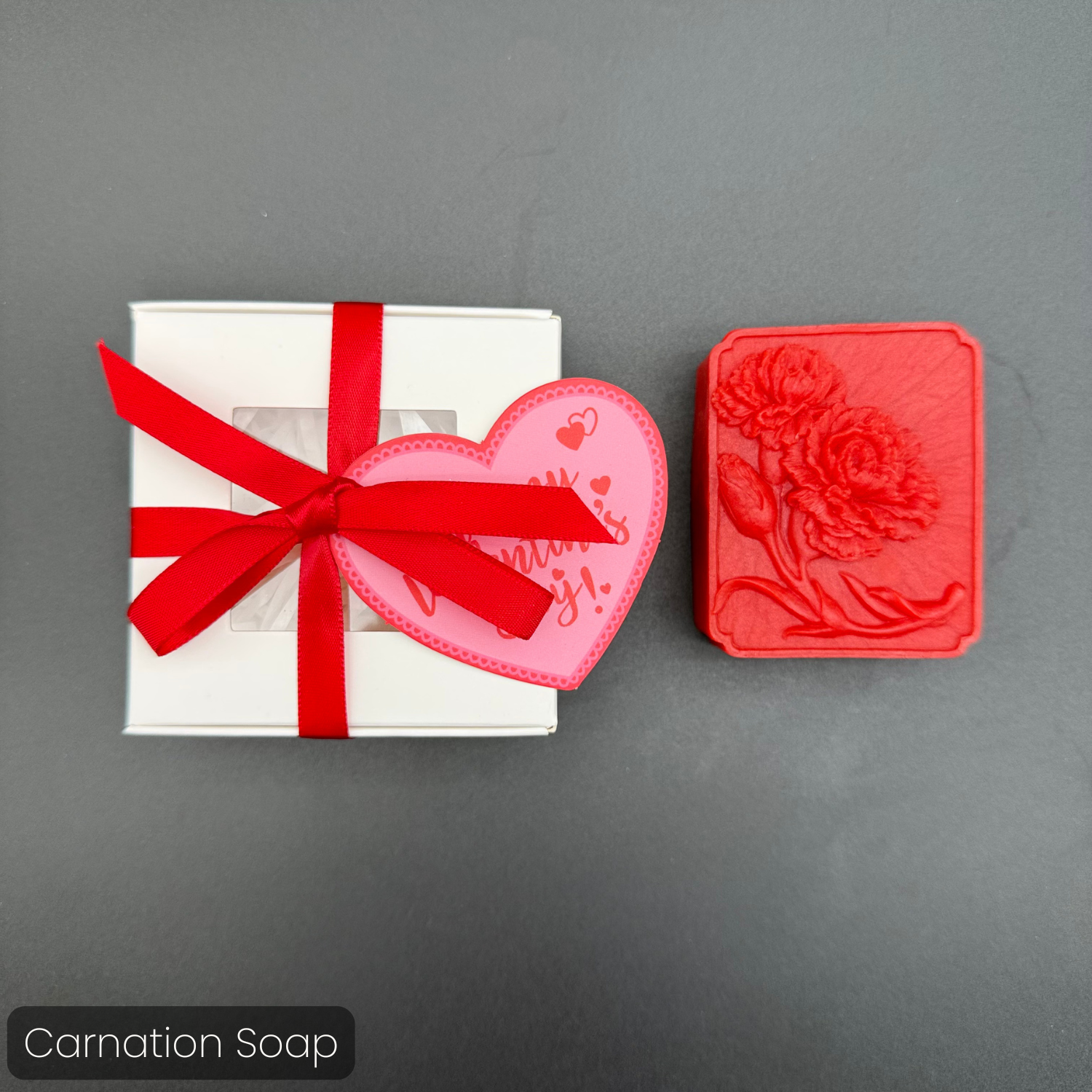 Romantic & giftable, our Carnation Bar Soap features a floral design inspired by delicate carnation blooms, adding a soft, elegant touch to any sink or shower. Each bar arrives packaged in a gift box with a festive tag tied with ribbon, making it ready for gifting.